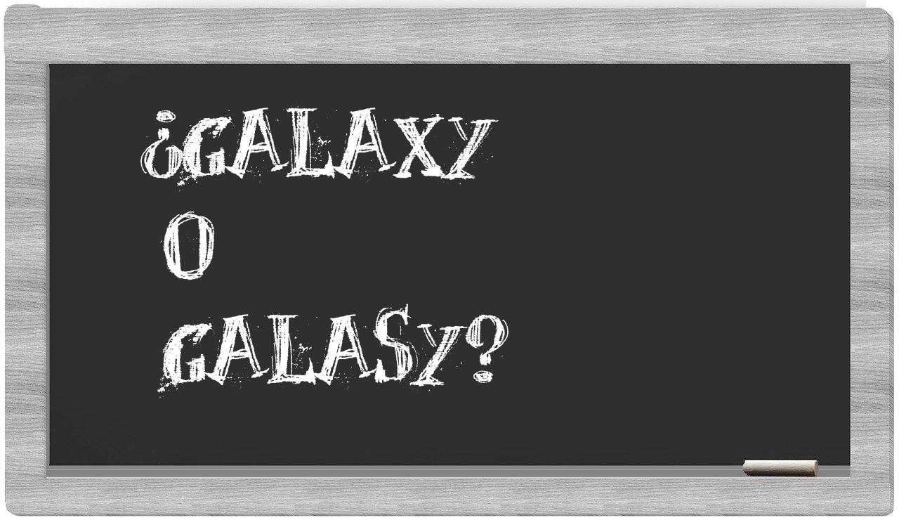 Cuando se trata de elegir entre galaxy y galasy, la decisión es evidente, puesto que solo galaxy refleja la forma adecuadamente registrada, mientras que galasy no se encuentra en el repertorio del Diccionario de la Real Academia Española.