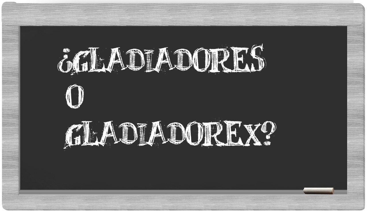 No deberías titubear cuando se trata de distinguir entre gladiadores y gladiadorex, porque únicamente gladiadores está correctamente redactada; cabe mencionar que gladiadorex no se encuentra registrada en el Diccionario de la Real Academia Española.