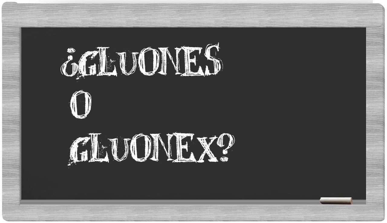 Cuando se trata de las palabras gluones y gluonex, no hay motivo para la confusión, puesto que únicamente gluones es la forma adecuada; de hecho, gluonex no se encuentra registrada en el Diccionario de la Real Academia de la Lengua.