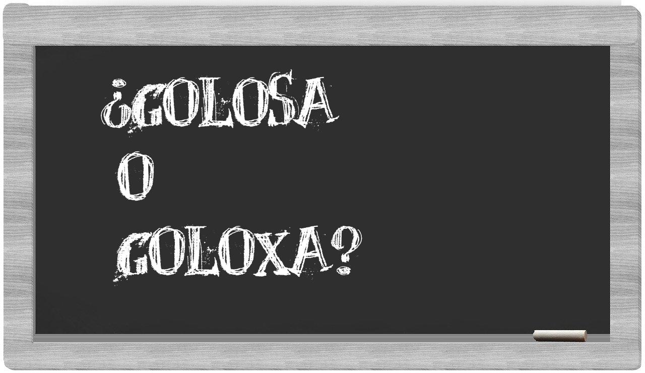 En la situación particular que involucra las palabras golosa y goloxa, no deberías titubear, porque únicamente golosa es la que se encuentra debidamente registrada. La palabra goloxa, por otro lado, no figura en el Diccionario de la Real Academia Española.