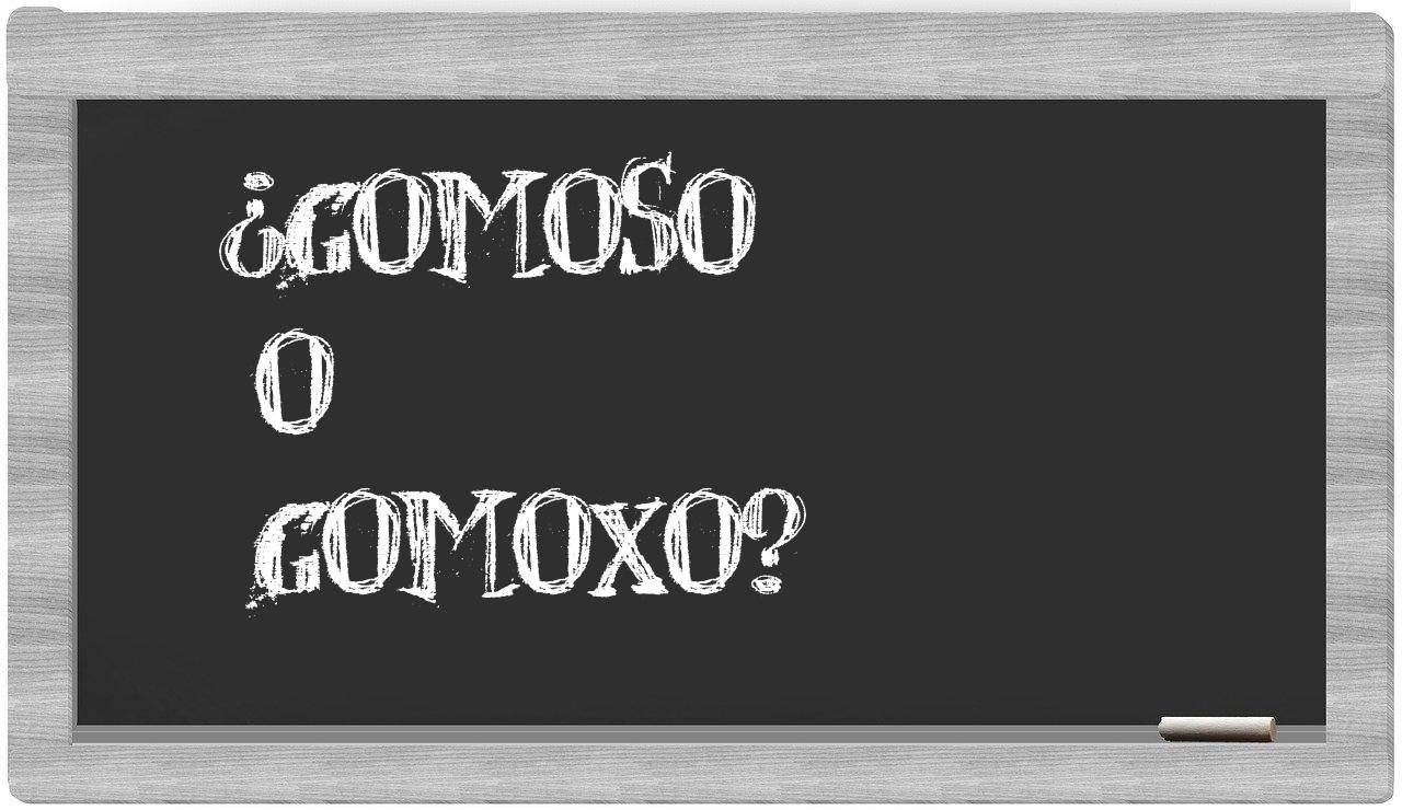 Cuando te encuentres ante las opciones de gomoso y gomoxo, no vaciles en tu elección, puesto que únicamente gomoso es la que se encuentra debidamente aceptada, mientras que gomoxo no figura en el Diccionario de la Real Academia Española.