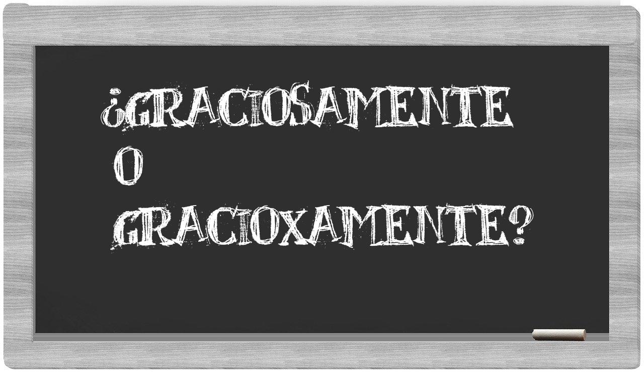 En la particularidad que involucra a graciosamente y gracioxamente, nunca deberías tener titubeos, puesto que únicamente graciosamente se encuentra debidamente registrada en el léxico formal. Por otro lado, gracioxamente no figura en el repertorio de la Real Academia Española.