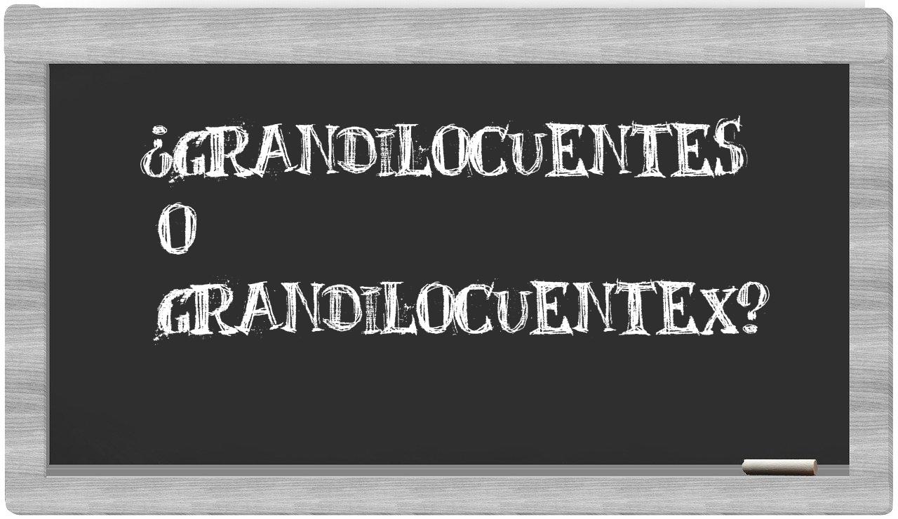 Cuando se trata de distinguir entre grandilocuentes y grandilocuentex, la elección es clara y no debería suscitar inseguridades, dado que únicamente grandilocuentes figura adecuadamente en el Diccionario de la Real Academia Española, mientras que grandilocuentex carece de reconocimiento oficial.