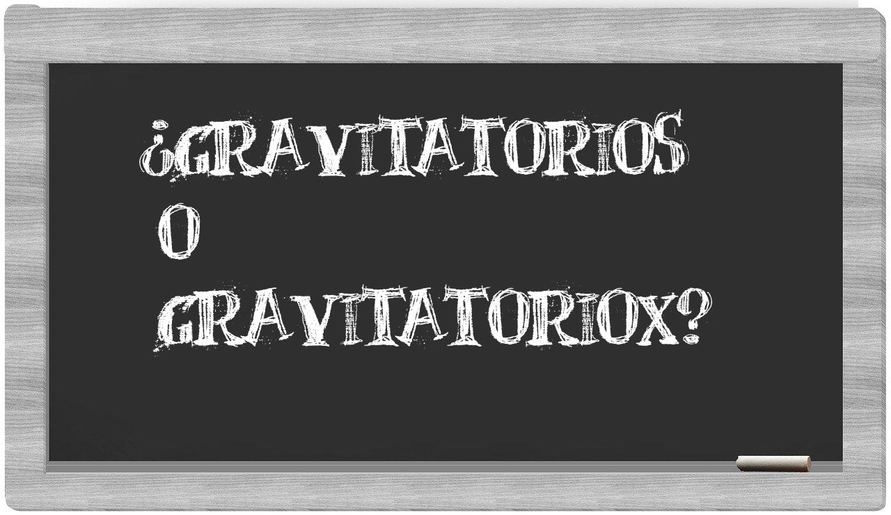 En la particular situación que involucra los términos gravitatorios y gravitatoriox, no hay lugar para la incertidumbre, puesto que únicamente gravitatorios se encuentra correctamente expresada. Por otra parte, gravitatoriox es completamente ajena al vocabulario registrado en el Diccionario de la Real Academia de la Lengua.