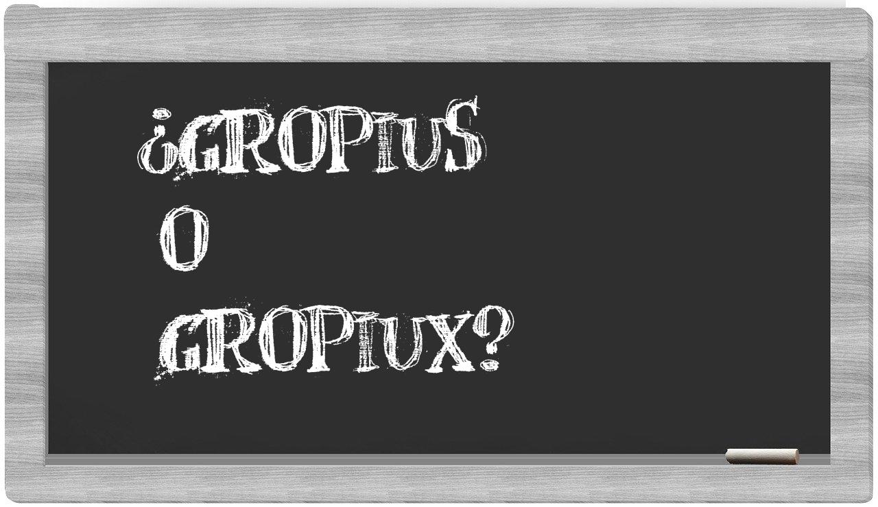 En lo que respecta específicamente a las expresiones gropius y gropiux, no hay lugar para la incertidumbre, pues únicamente gropius se encuentra correctamente redactada, mientras que gropiux no figura en el repertorio del Diccionario de la Real Academia de la Lengua.