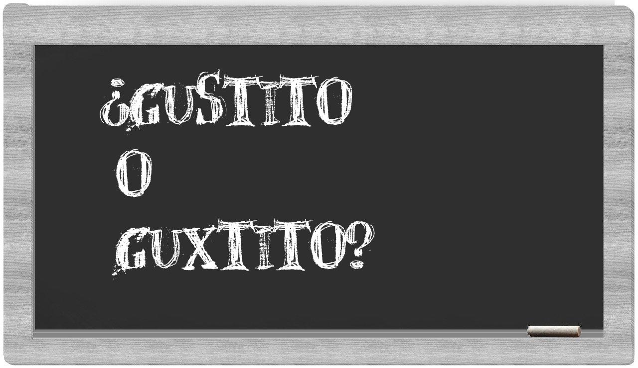 En la situación particular que involucra los términos gustito y guxtito, no deberías titubear en ningún momento, puesto que únicamente gustito es la forma correcta. La variante guxtito carece de reconocimiento en el Diccionario de la Real Academia Española.