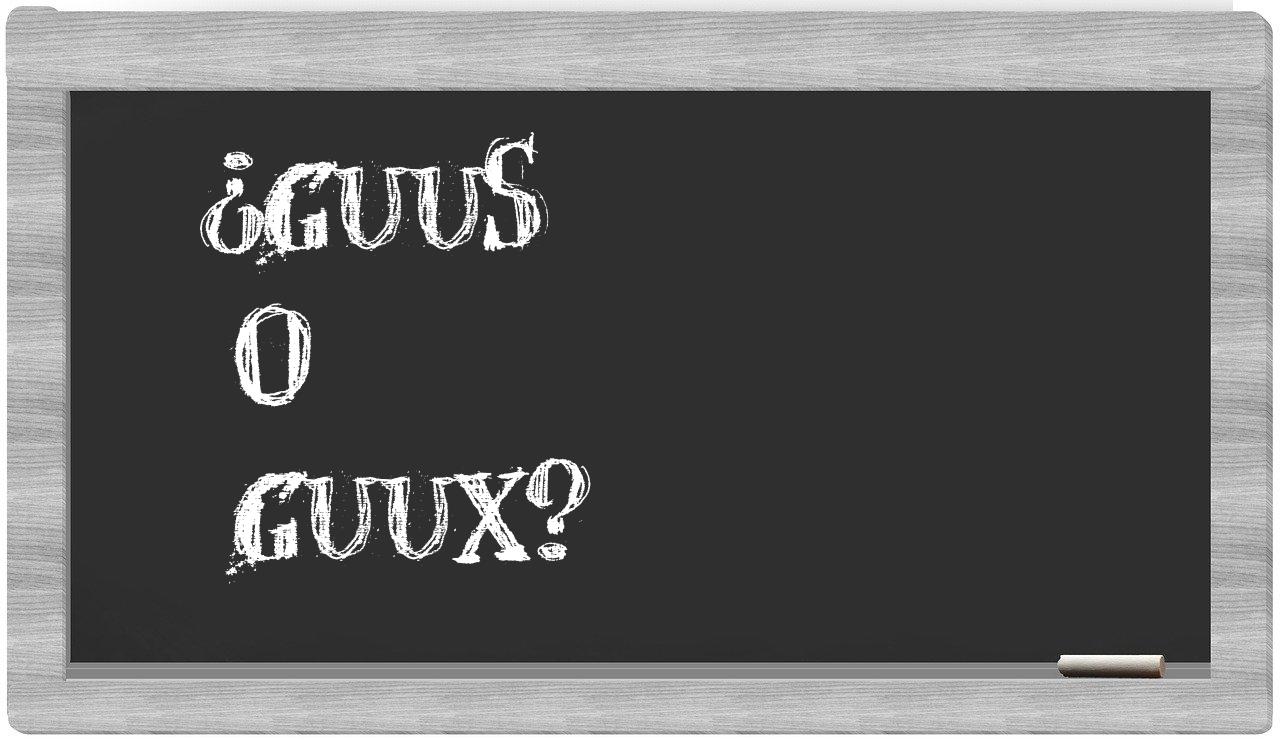 Cuando se presenta la disyuntiva entre guus y guux, es fundamental no vacilar, dado que únicamente guus es la que se encuentra adecuadamente redactada. Por su parte, guux no figura en el glosario de la Real Academia Española.