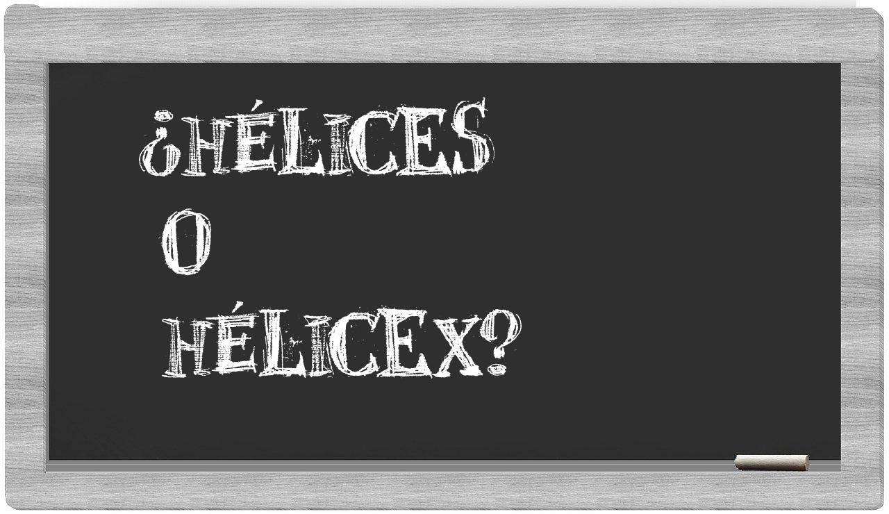 La mezcla entre hélices y hélicex se origina, en gran parte, debido a su semejanza en la pronunciación. En la mayor parte de los acentos del español, ambas palabras se articulan de manera muy parecida, lo que puede inducir a error al pensar que su escritura es idéntica. No obstante, la forma correcta de escribir cada término está determinada por su raíz etimológica y las normas particulares del idioma español que rigen su escritura.