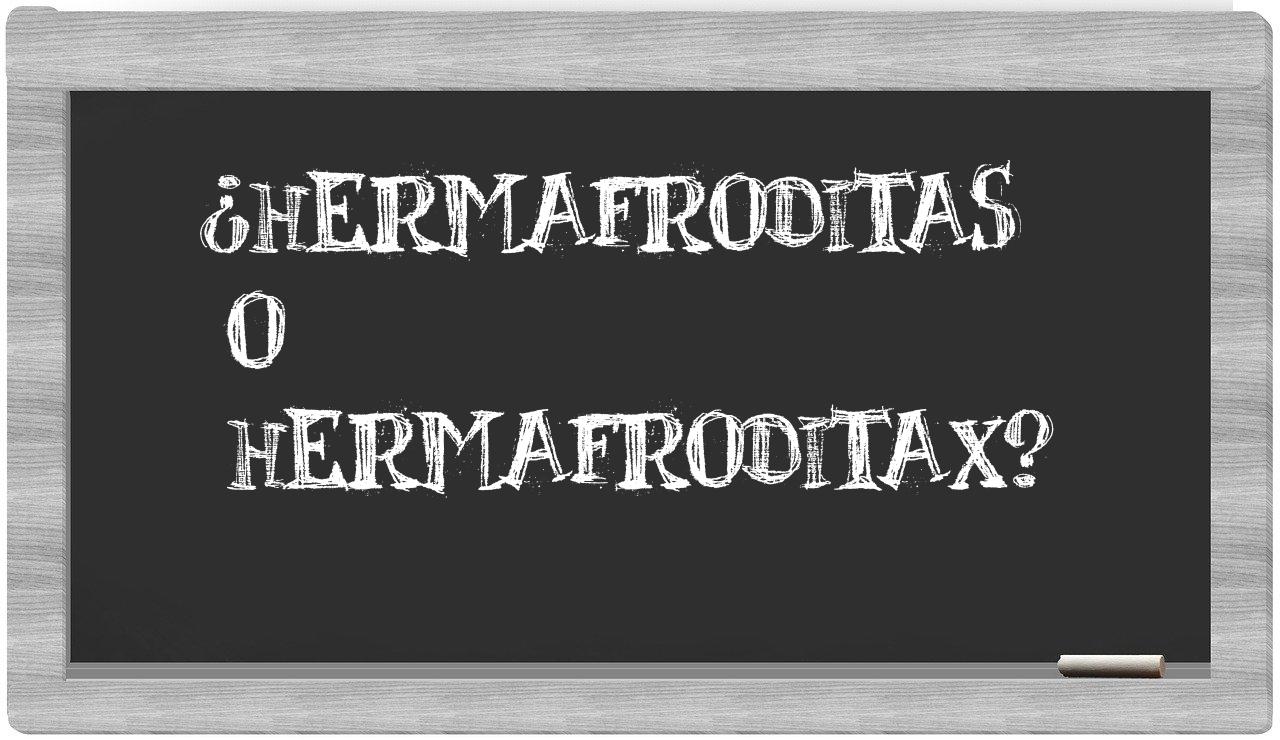 Cuando se trata de la elección entre hermafroditas y hermafroditax, no hay motivo para titubear, puesto que solamente hermafroditas es la forma adecuada y aceptada, ya que hermafroditax no se encuentra registrada en el Diccionario de la Real Academia Española.