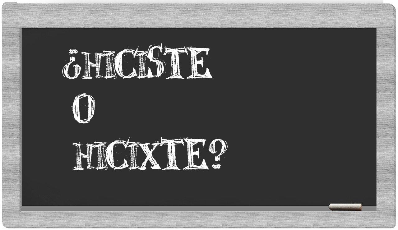 En lo que respecta a la comparación entre hiciste y hicixte, nunca deberías experimentar incertidumbre, porque únicamente hiciste es la forma correcta de escribirlo. Por otra parte, hicixte no tiene cabida en el Diccionario de la Real Academia Española.