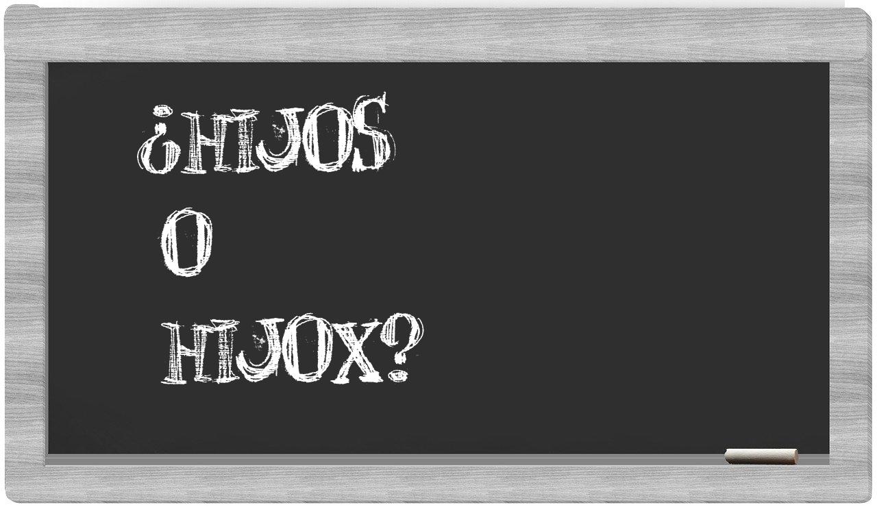 Cuando se trata de la comparación entre hijos y hijox, es crucial que no albergues dudas, puesto que únicamente hijos es la única opción que cuenta con una escritura adecuada. Por otro lado, hijox no figura en el Diccionario de la Real Academia Española.