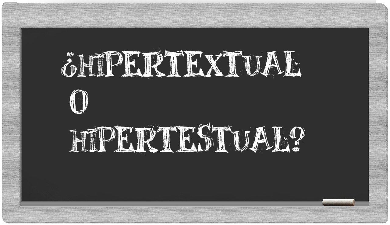 Cuando te sitúas ante la disyuntiva entre hipertextual y hipertestual, no existe motivo alguno para titubear, dado que únicamente hipertextual es la opción correctamente asentada en el idioma, mientras que hipertestual carece de reconocimiento en el Diccionario de la Real Academia Española.