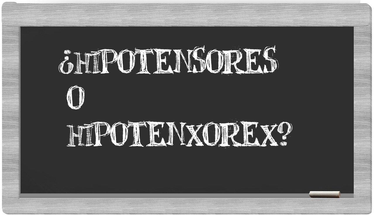 Cuando se trata de la combinación entre el término hipotensores y el vocablo hipotenxorex, es fundamental que no experimentes vacilaciones, porque exclusivamente hipotensores es la forma adecuada. Por otro lado, hipotenxorex no se encuentra en el repertorio de la Real Academia Española.