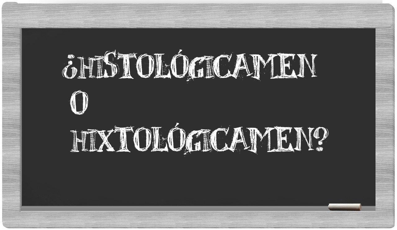 Cuando se presenta la disyuntiva entre histológicamen y hixtológicamen, es fundamental que no vaciles, puesto que únicamente histológicamen está debidamente registrada como correcta. Por otro lado, hixtológicamen no figura en el Diccionario de la Real Academia Española.