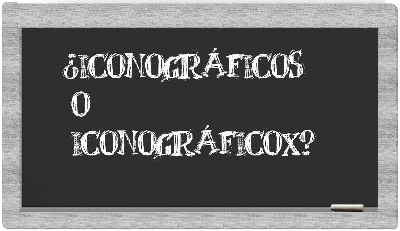 Cuando se trata de la distinción entre iconográficos y iconográficox, la elección es evidente, puesto que únicamente iconográficos se encuentra correctamente formulada. Cabe mencionar que iconográficox no figura en el prestigioso Diccionario de la Real Academia Española.