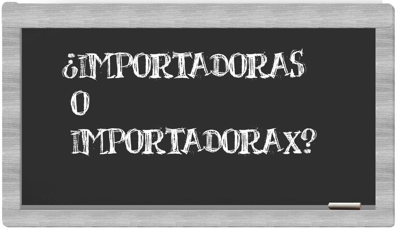 Cuando se trata de la distinción entre importadoras y importadorax, no deberías titubear ni un instante, puesto que únicamente importadoras figura correctamente en los registros de la lengua oficial, mientras que importadorax no se halla en el prestigioso Diccionario de la Real Academia Española.