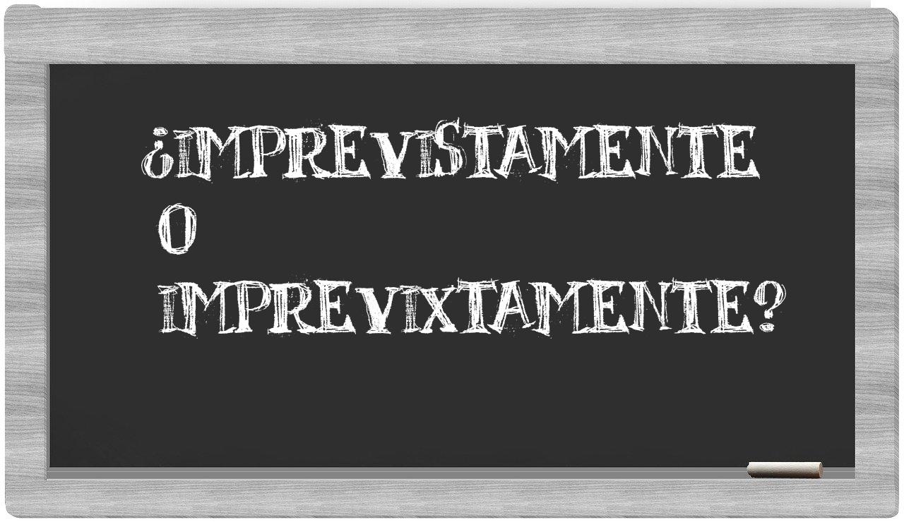 En la situación particular que se presenta entre el término imprevistamente y su contraparte imprevixtamente, no deberías experimentar confusión, pues únicamente imprevistamente se encuentra debidamente registrado y aceptado, mientras que imprevixtamente es una palabra que no tiene cabida en el Diccionario de la Real Academia Española.