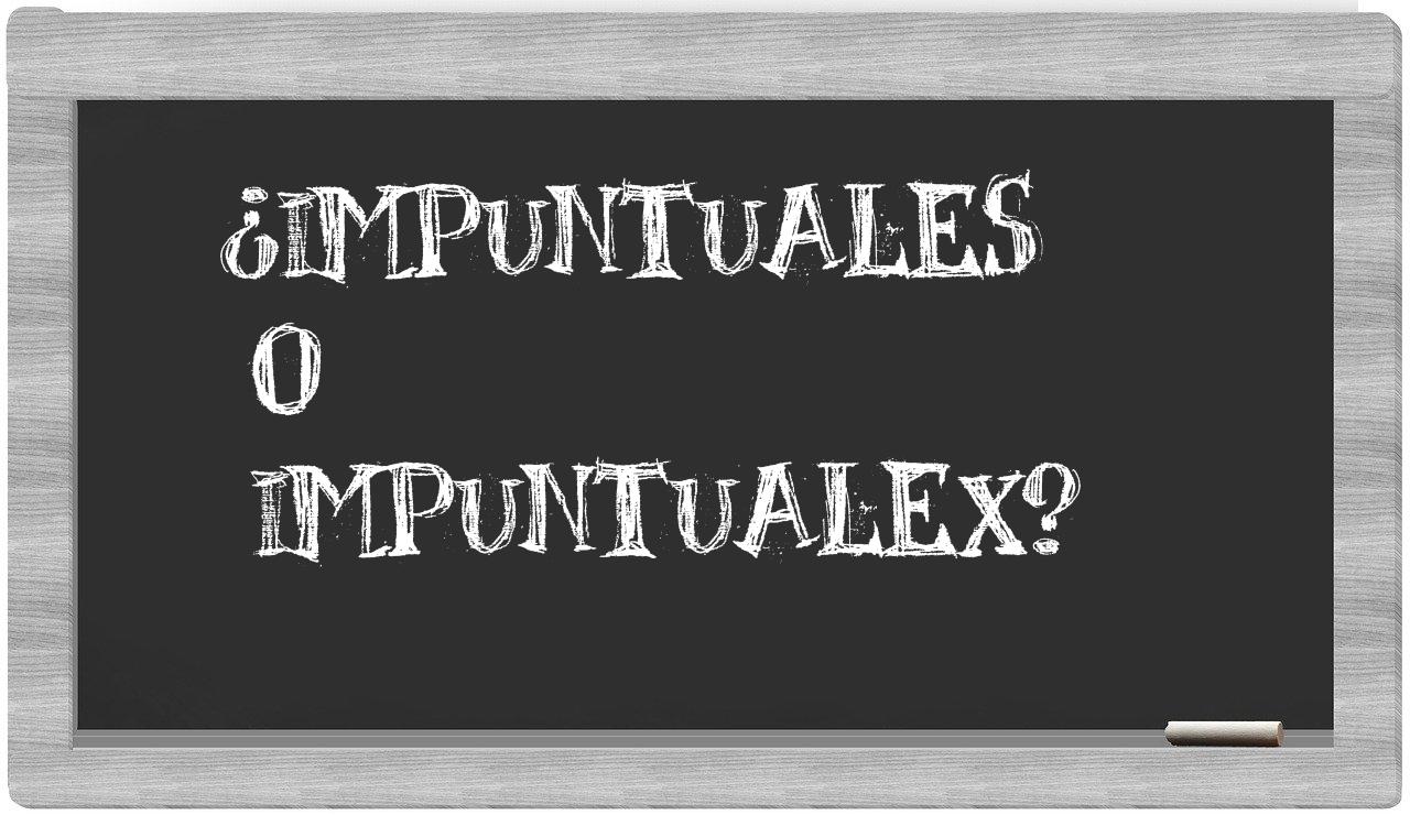 En la situación específica al referirte a impuntuales y impuntualex, la decisión debería ser clara, puesto que solo impuntuales es la que se encuentra debidamente registrada, mientras que impuntualex no forma parte del vocabulario oficial de la Real Academia Española.