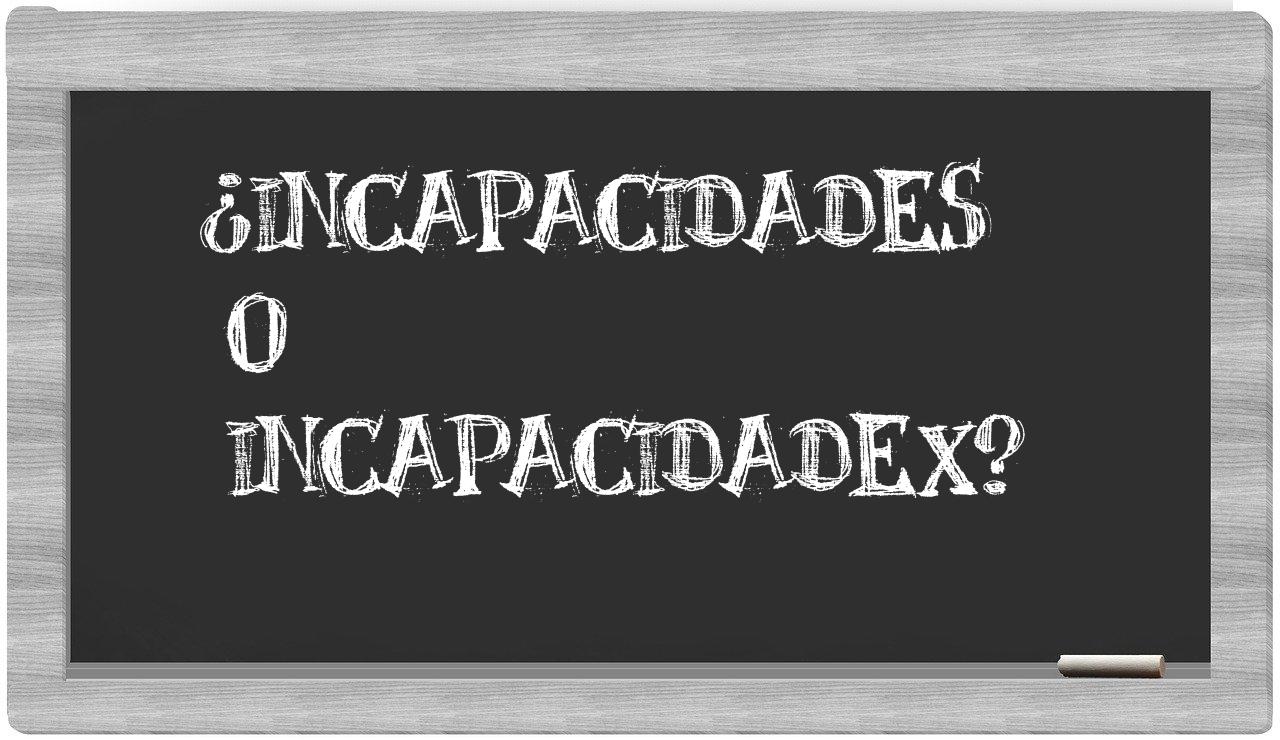 Con el fin de ayudarte a fijar en tu memoria la escritura adecuada de incapacidades, te presentamos la explicación que ofrece el diccionario sobre esta palabra: