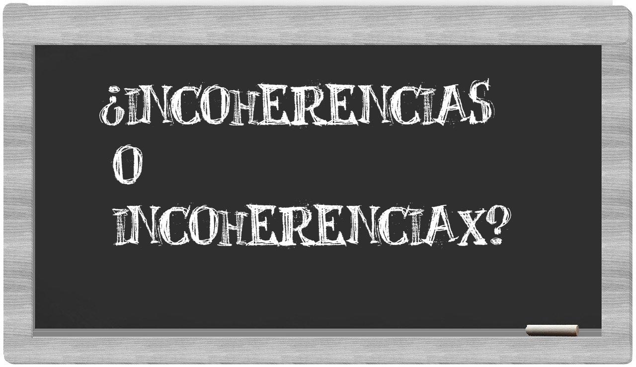 Cuando se presenta la elección entre incoherencias y incoherenciax, no hay lugar a la indecisión, pues únicamente incoherencias es la opción correcta, mientras que incoherenciax carece de existencia en el diccionario de la Real Academia Española.