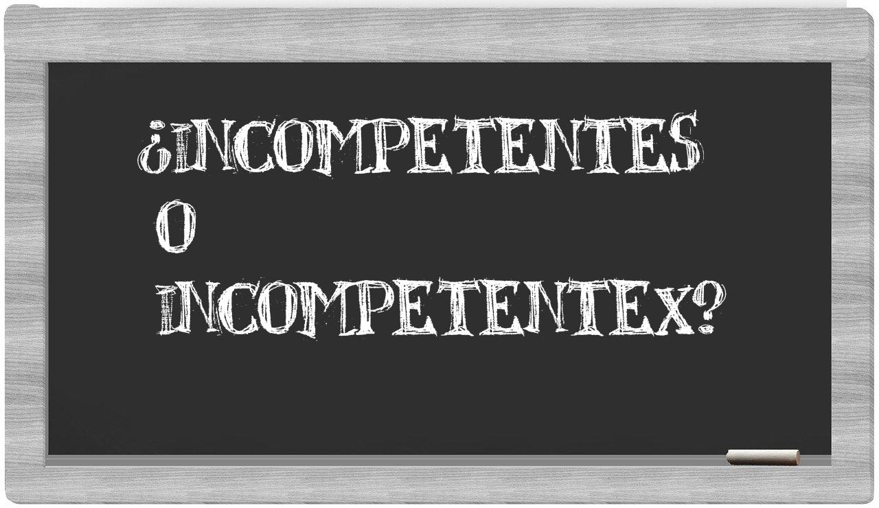 Cuando se trata de elegir entre incompetentes y incompetentex, la decisión es evidente, puesto que solo incompetentes se encuentra debidamente registrado y aceptado, mientras que incompetentex no figura en el Diccionario de la Real Academia Española.