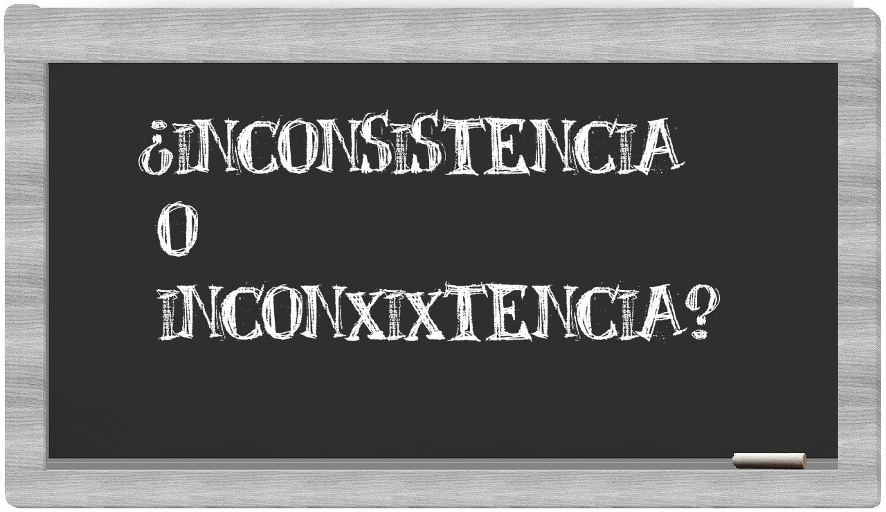 Cuando se trata de las expresiones inconsistencia y inconxixtencia, no hay motivo para la incertidumbre, dado que únicamente inconsistencia se encuentra debidamente registrada en el Diccionario de la Real Academia Española, mientras que inconxixtencia no figura entre sus entradas aceptadas.