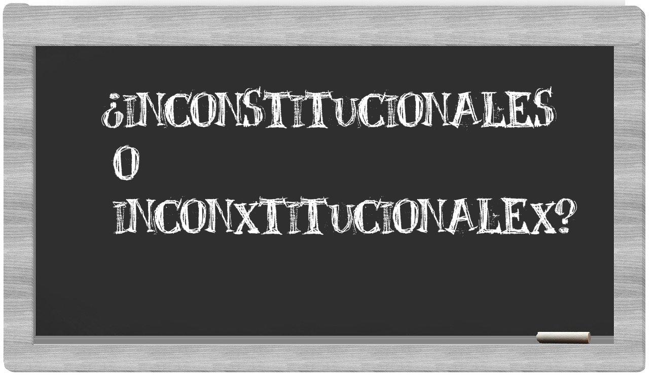 Cuando se trata de las palabras inconstitucionales y inconxtitucionalex, nunca deberías tener vacilaciones, dado que únicamente inconstitucionales está correctamente redactada. Cabe mencionar que inconxtitucionalex no se encuentra en el diccionario oficial de la Real Academia Española.