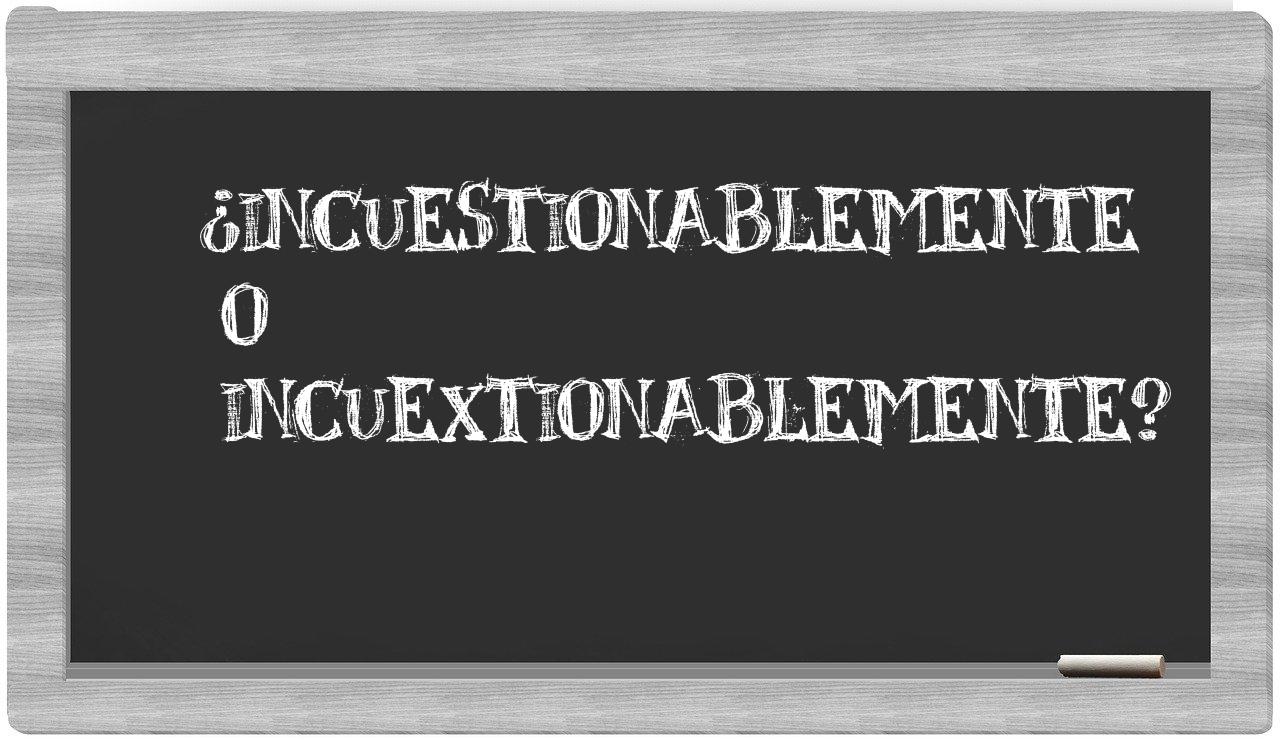 En la situación particular que involucra los términos incuestionablemente y incuextionablemente, no deberías titubear, puesto que únicamente incuestionablemente es la forma adecuada. Por otro lado, incuextionablemente carece de reconocimiento en el Diccionario de la Real Academia Española.