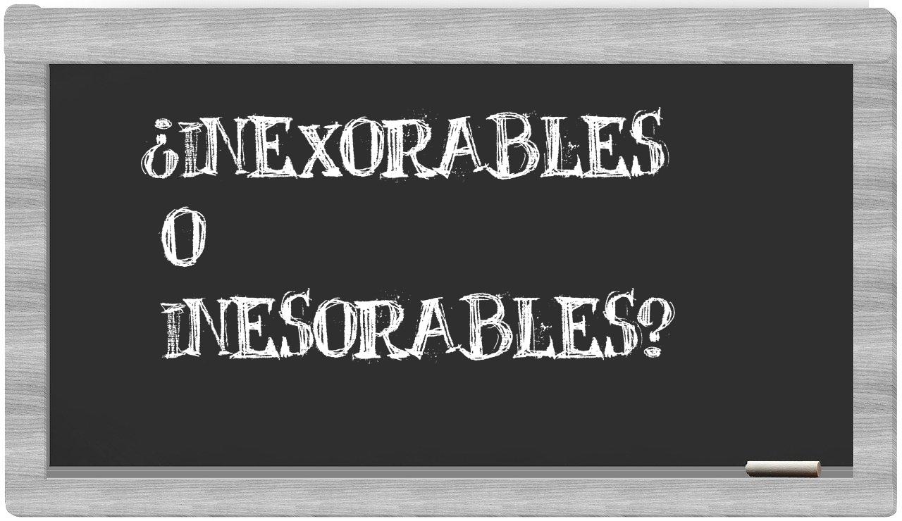 Cuando se trata de distinguir entre inexorables y inesorables, no hay lugar para la incertidumbre, puesto que únicamente inexorables se encuentra correctamente redactada. Cabe señalar que inesorables no figura en el léxico de la Real Academia Española.