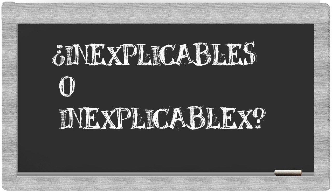 En la circunstancia particular que involucra las palabras inexplicables y inexplicablex, no deberías titubear, puesto que únicamente inexplicables se presenta como la opción correcta. Por otro lado, inexplicablex no figura en el Diccionario de la Real Academia Española.