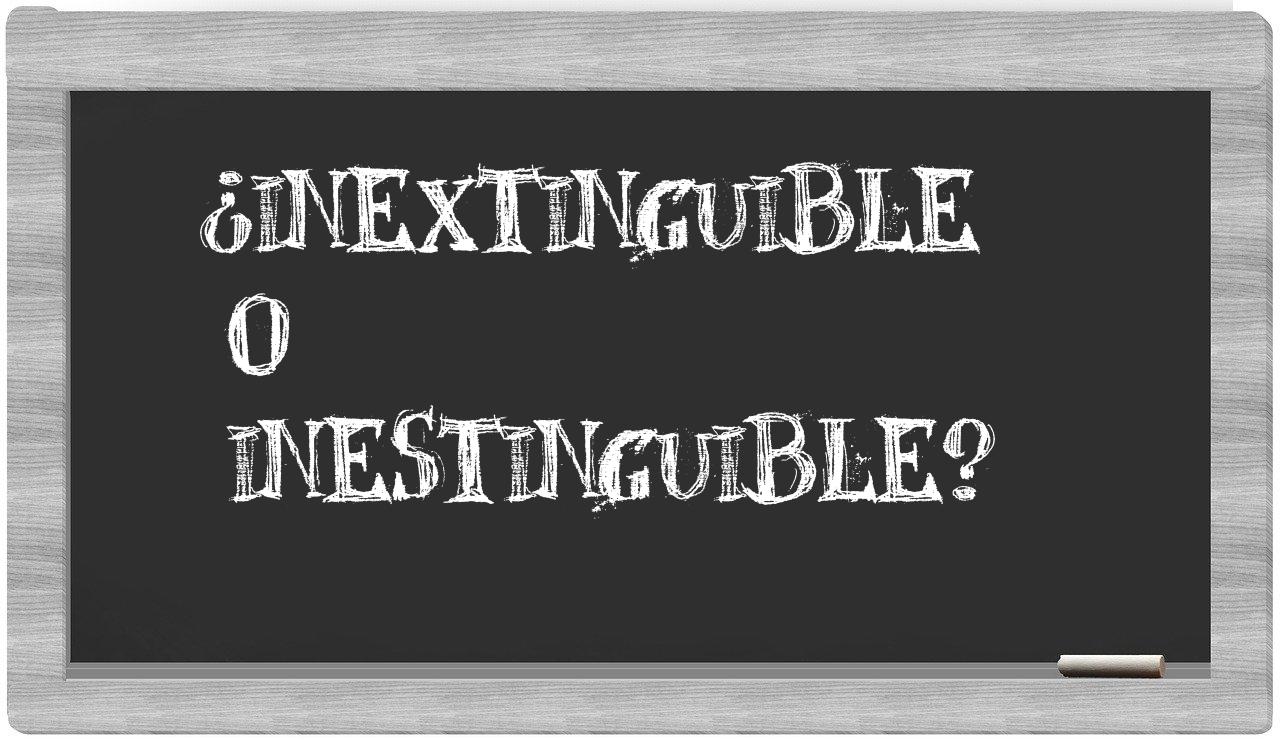 Cuando se trate de la elección entre inextinguible y inestinguible, no deberías titubear, pues únicamente inextinguible se presenta con la ortografía adecuada. Por otro lado, inestinguible no figura en el Diccionario de la Real Academia Española.