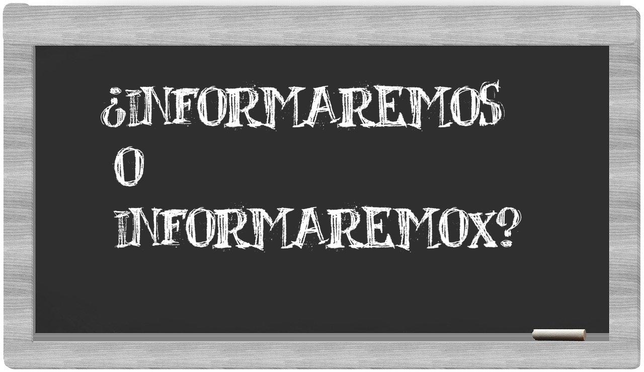 No deberías titubear cuando se trata de distinguir entre informaremos y informaremox, porque únicamente informaremos está correctamente redactada; cabe mencionar que informaremox no se encuentra registrada en el Diccionario de la Real Academia Española.