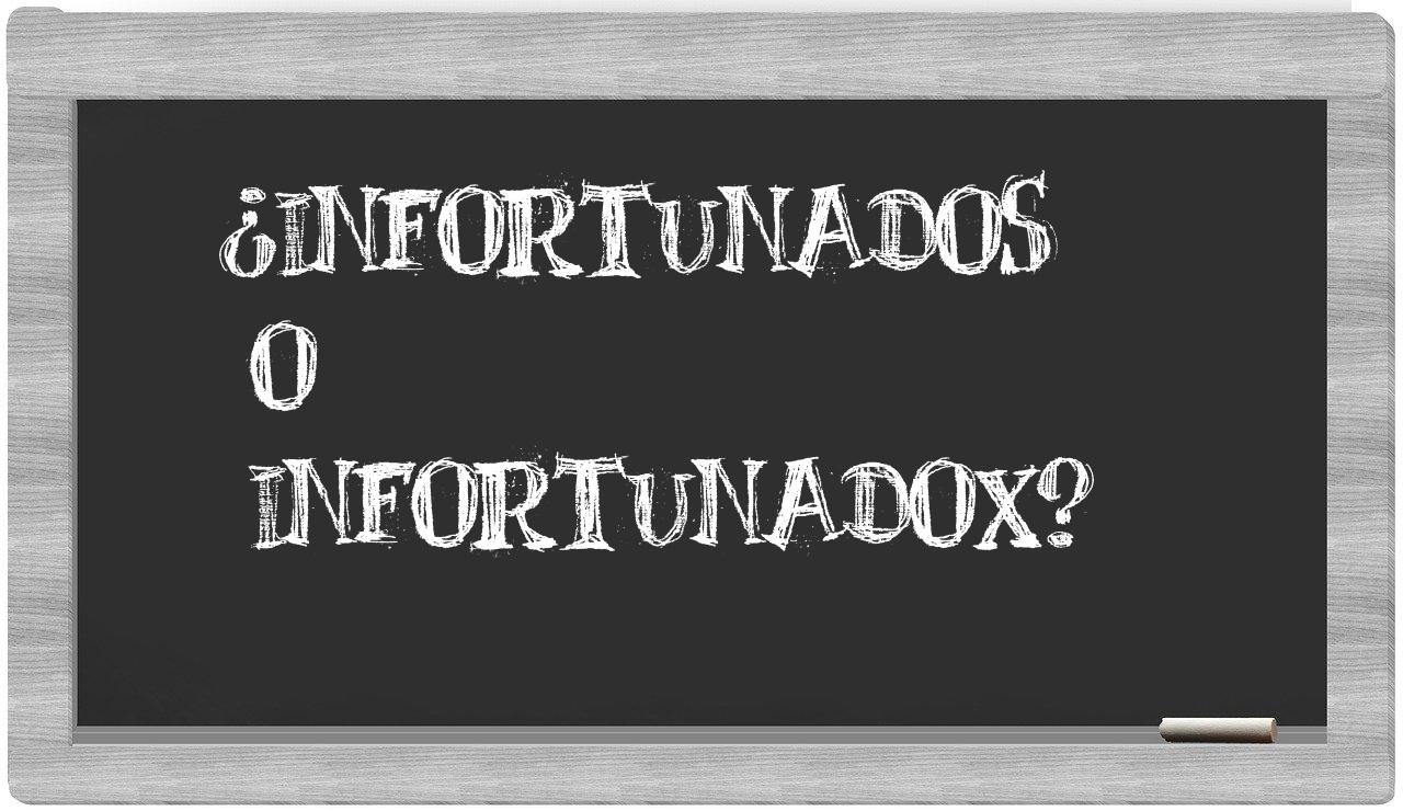Cuando te enfrentes a la elección entre infortunados y infortunadox, no te sientas indeciso, porque solo infortunados es la opción que se encuentra correctamente documentada. En el diccionario de la Real Academia Española, infortunadox no tiene cabida.