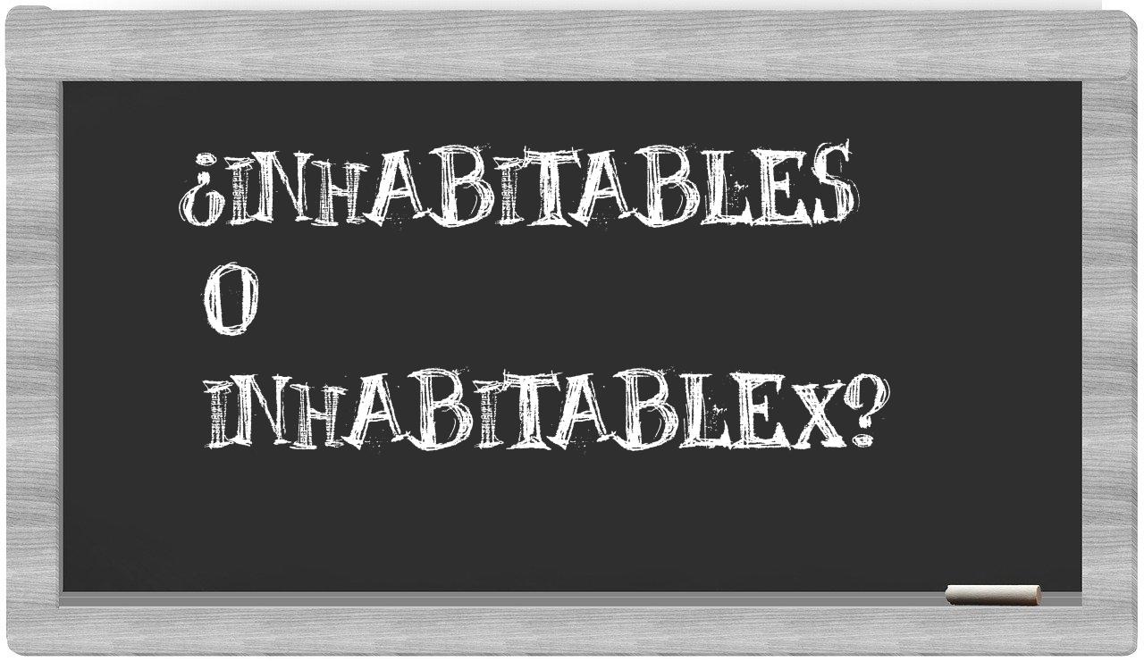 En la particular situación entre los términos inhabitables y inhabitablex, es fundamental no titubear, puesto que únicamente inhabitables se presenta de manera adecuada. Por su parte, inhabitablex no se encuentra recogido en el Diccionario de la Real Academia Española.