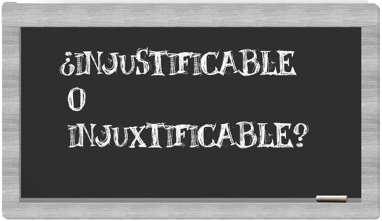 Cuando te enfrentes a la elección entre injustificable y injuxtificable, no vaciles ni un instante, porque únicamente injustificable es la forma adecuada, mientras que injuxtificable no se encuentra registrada en el Diccionario de la Real Academia Española.