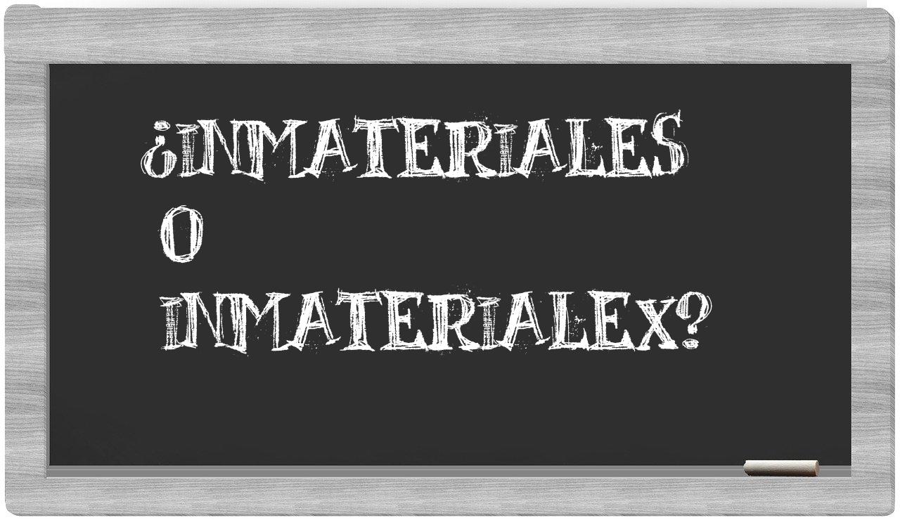 En la situación específica que envuelve a los términos inmateriales y inmaterialex, es crucial que no vaciles, porque únicamente inmateriales se encuentra correctamente formulada. La palabra inmaterialex ni siquiera figura en el Diccionario de la Real Academia Española.