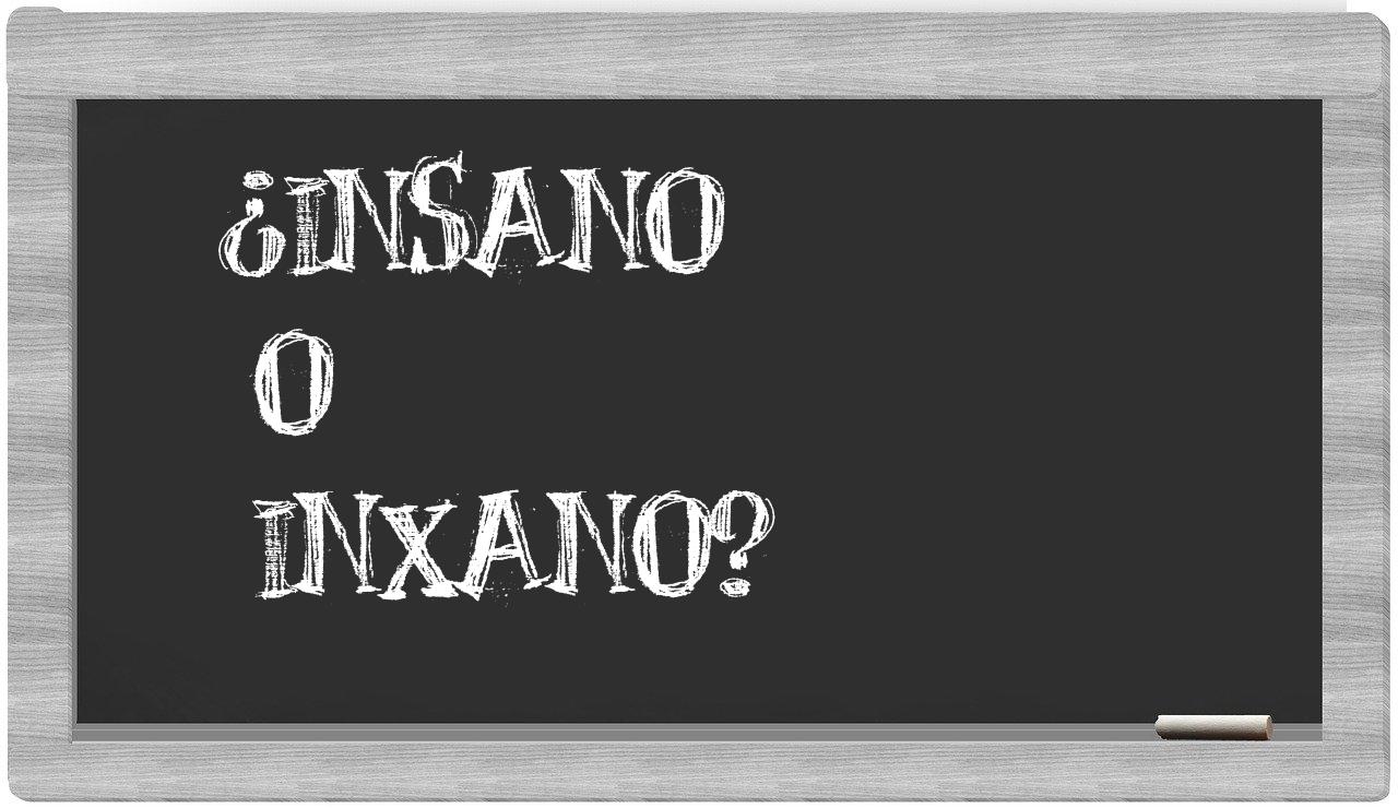 Cuando se trata de la distinción entre insano y inxano, no hay motivo para la incertidumbre, puesto que solo insano es la opción correcta. Además, inxano no se encuentra registrada en el Diccionario de la Real Academia Española.