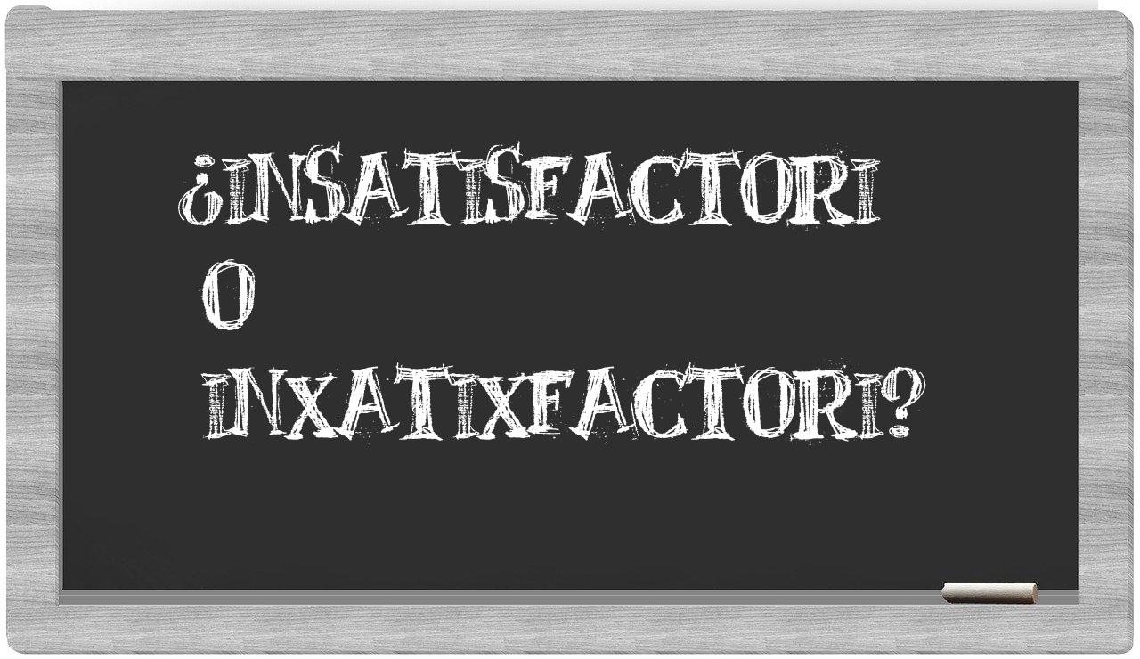 Cuando se trata del uso entre insatisfactori y inxatixfactori, la elección es clara y no debe ser objeto de incertidumbre, puesto que únicamente insatisfactori se encuentra debidamente registrada en el Diccionario de la Real Academia Española, mientras que inxatixfactori carece de presencia en él.
