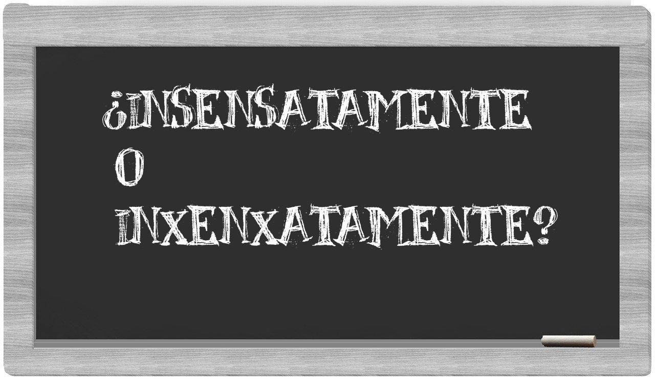 Cuando se presenta la comparación entre insensatamente y inxenxatamente, no debería haber lugar a la incertidumbre, puesto que únicamente insensatamente se encuentra validada como una forma correcta. Por otro lado, inxenxatamente no figura en el Diccionario de la Real Academia Española.