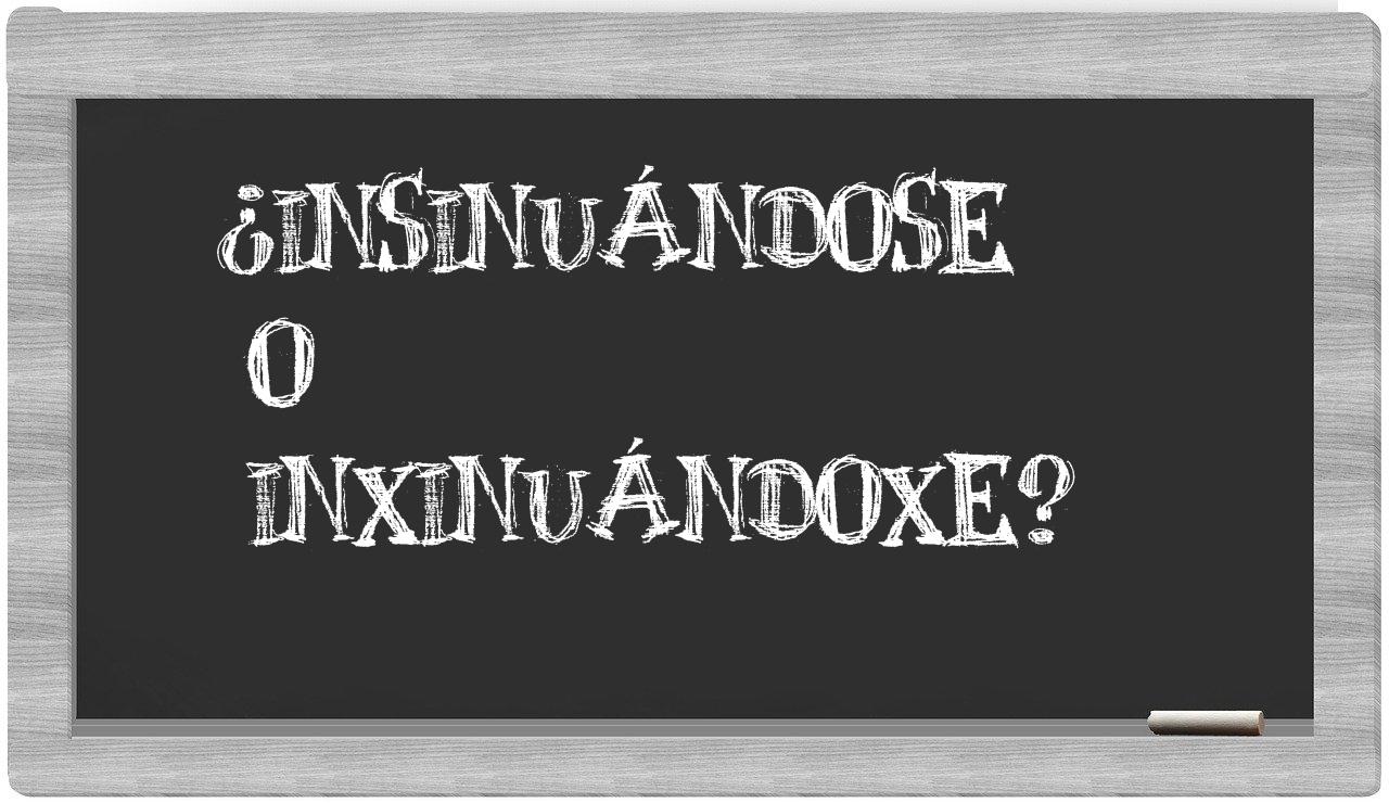 Cuando se presenta la situación que involucra los términos insinuándose y inxinuándoxe, es fundamental que no existan titubeos en tu elección, puesto que únicamente insinuándose se encuentra registrada de manera adecuada. Por otro lado, inxinuándoxe carece de presencia en el Diccionario de la Real Academia Española.