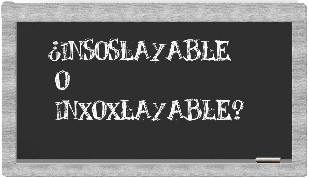 En la situación particular donde se confrontan los términos insoslayable y inxoxlayable, es fundamental que no vaciles, pues únicamente insoslayable se encuentra correctamente redactada, mientras que inxoxlayable no figura en el repertorio del Diccionario de la Real Academia Española.