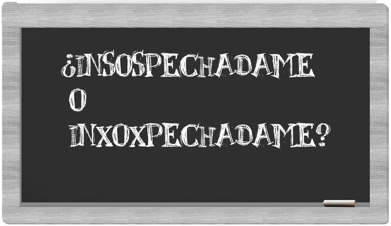 En la situación específica que involucra las palabras insospechadame y inxoxpechadame, no deberías tener ninguna incertidumbre, ya que únicamente insospechadame es la forma que se encuentra correctamente redactada. En cambio, inxoxpechadame no se halla en el Diccionario de la Real Academia Española.
