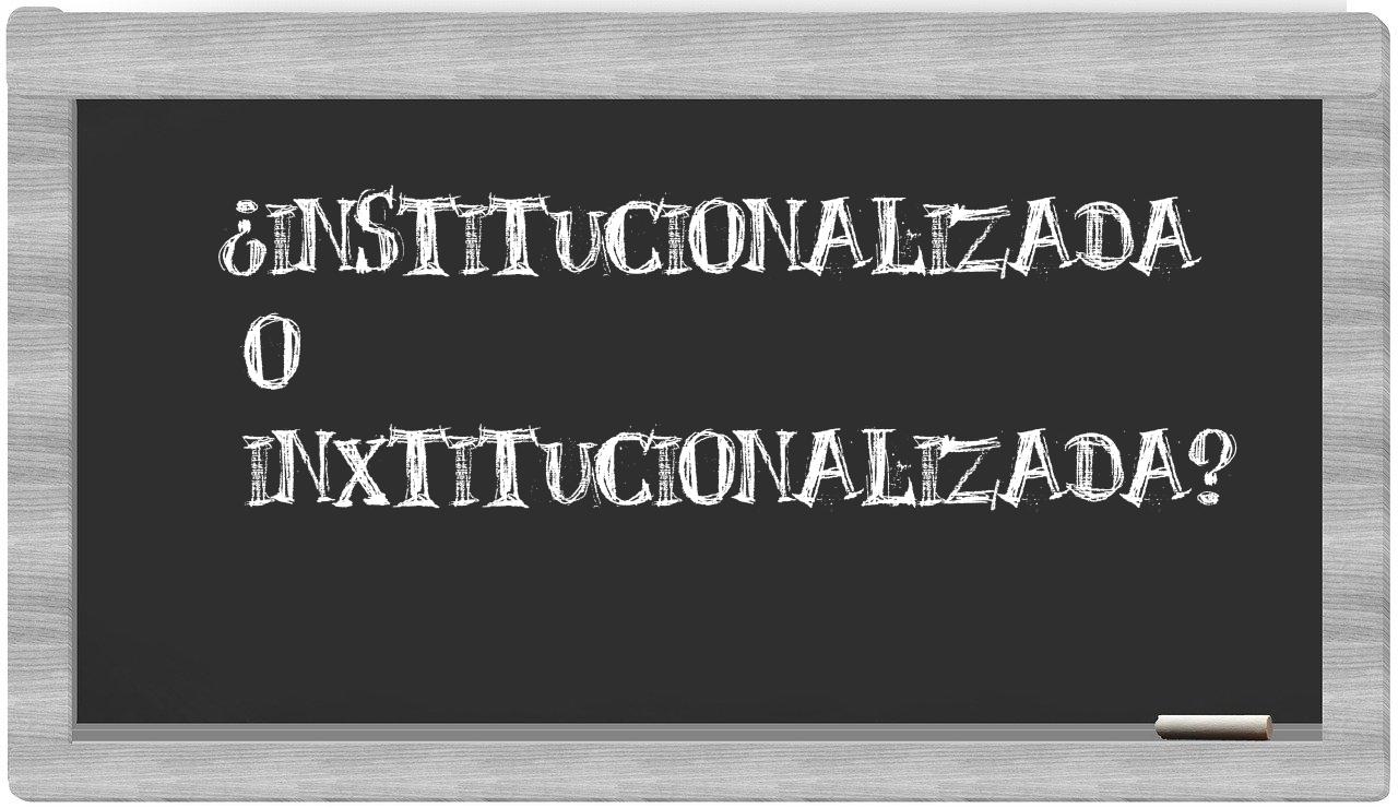Referente a la distinción entre institucionalizada y inxtitucionalizada, es fundamental que no vaciles, puesto que únicamente institucionalizada se encuentra correctamente formulada. Por otro lado, inxtitucionalizada carece de reconocimiento en el Diccionario de la Real Academia Española.