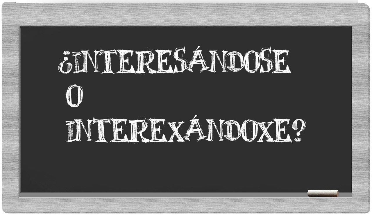 Cuando se trata de las palabras interesándose y interexándoxe, la elección es clara y no debe generar indecisiones, puesto que únicamente interesándose es la forma correcta, mientras que interexándoxe no figura en el Diccionario de la Real Academia Española.