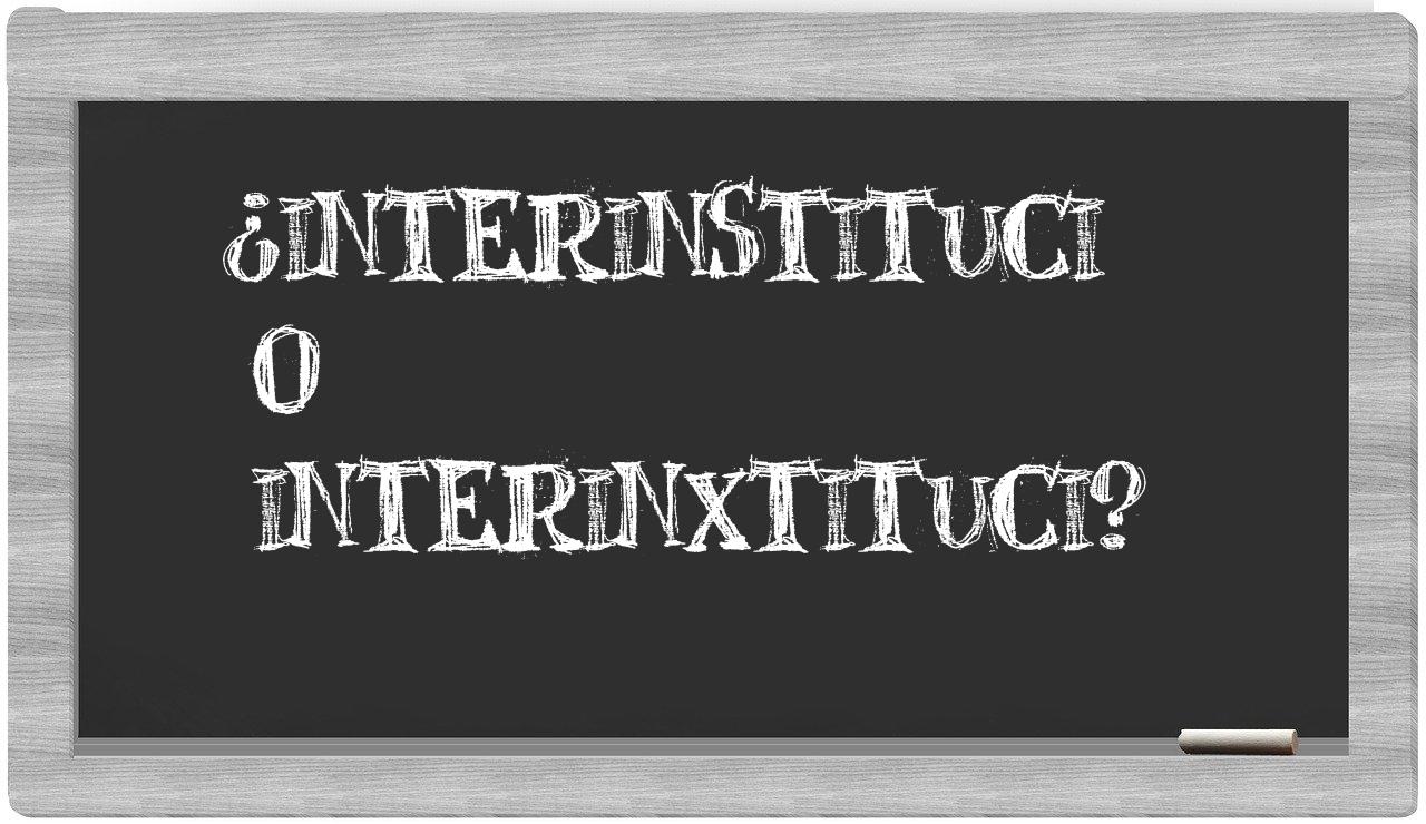 Cuando se trata de las expresiones interinstituci y interinxtituci, la elección es clara: no hay motivo para titubear, puesto que únicamente interinstituci es la forma correcta. Por cierto, interinxtituci no figura en el prestigioso Diccionario de la Real Academia Española.