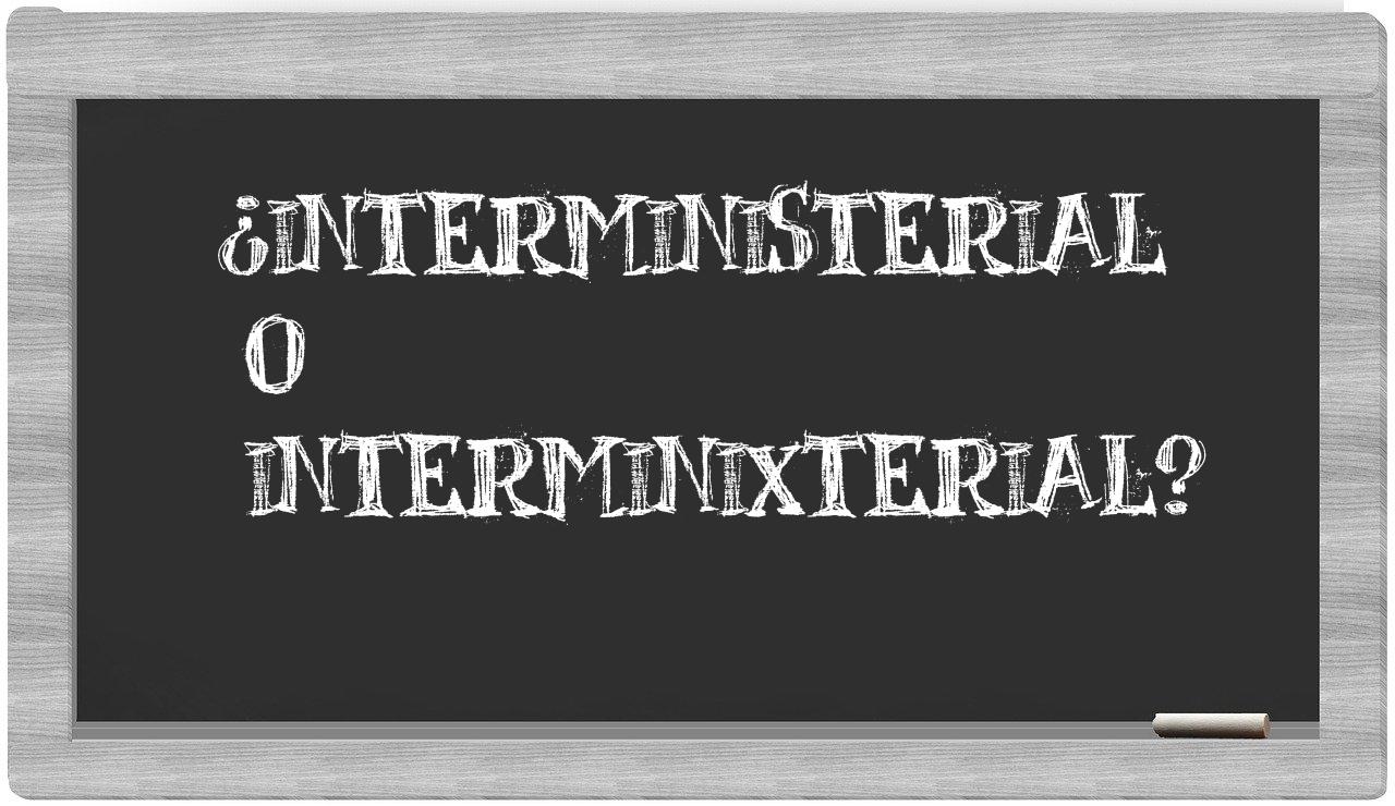 Cuando se presenta la disyuntiva entre interministerial y interminixterial, es fundamental no vacilar, dado que únicamente interministerial es la que se encuentra adecuadamente redactada. Por su parte, interminixterial no figura en el glosario de la Real Academia Española.