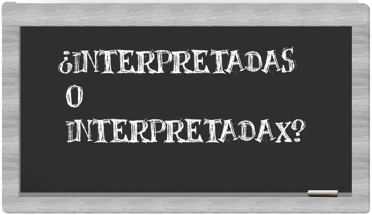 Cuando te enfrentes a la disyuntiva entre interpretadas y interpretadax, no hay lugar para la incertidumbre, porque únicamente interpretadas es la que se encuentra validada y aceptada, mientras que interpretadax no figura en el prestigioso Diccionario de la Real Academia Española.