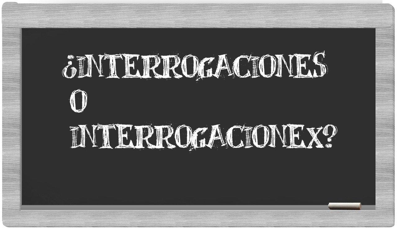 En la situación específica que involucra los términos interrogaciones y interrogacionex, no deberías titubear en ningún momento, puesto que únicamente interrogaciones se encuentra adecuadamente redactada. En cambio, interrogacionex carece de reconocimiento en el Diccionario de la Real Academia Española.