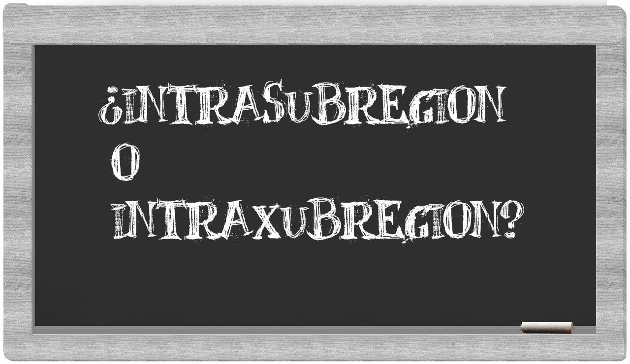 En la situación particular que involucra los términos intrasubregion y intraxubregion, no hay lugar para la indecisión, puesto que únicamente intrasubregion es la forma correcta y aceptada, mientras que intraxubregion carece de reconocimiento en el Diccionario de la Real Academia Española.