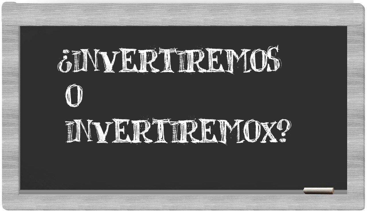 En la situación particular entre los términos invertiremos y invertiremox, nunca deberías tener incertidumbres, puesto que únicamente invertiremos se encuentra registrado de manera adecuada. Por otro lado, invertiremox no se halla en el compendio de la Real Academia de la Lengua.